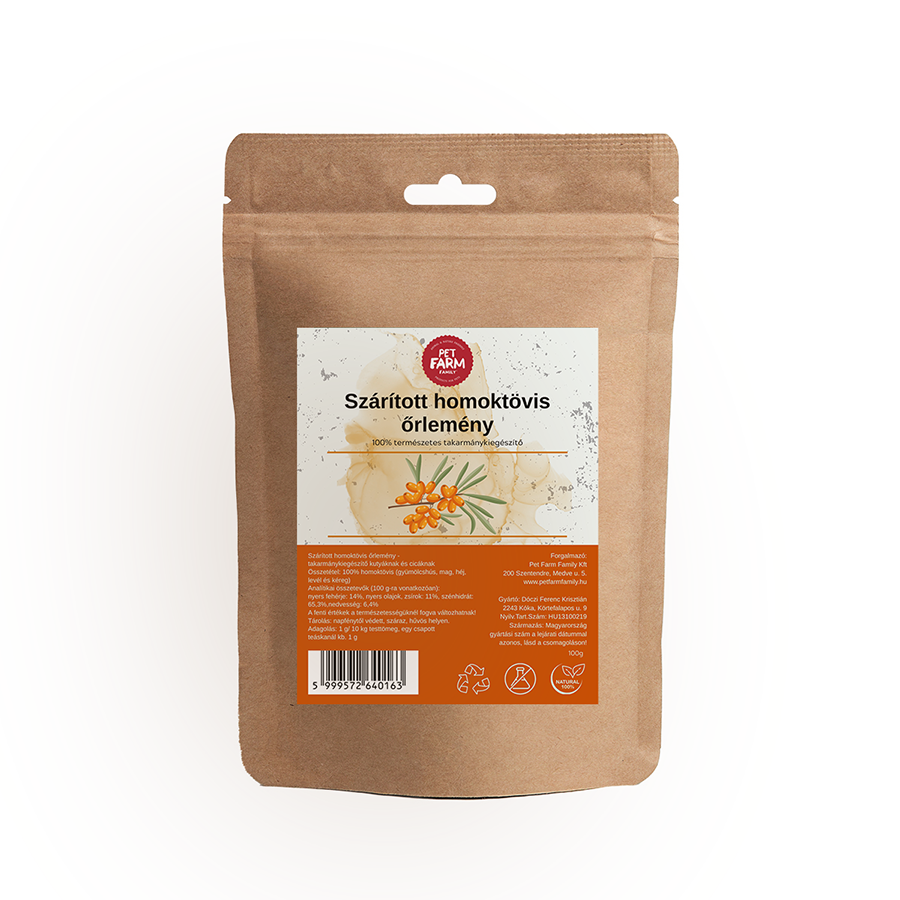 100% homoktövis (gyümölcshús, mag, héj, levél, kéreg).